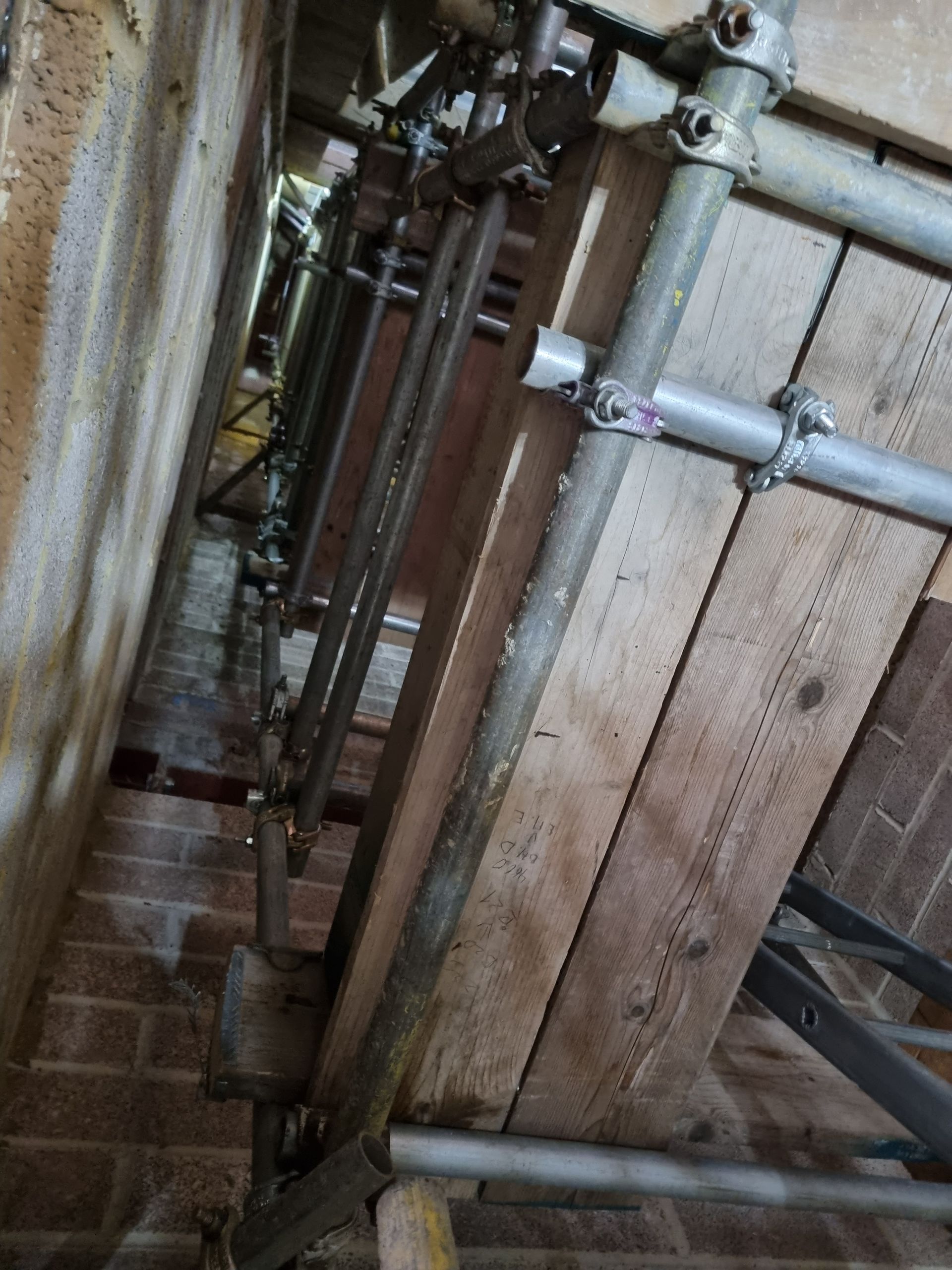 Erected this beam scaffold with Hanger dropping from beams. Bespoke drawing being used dues to scaffold works not being able to be completed using TG compliance sheet.